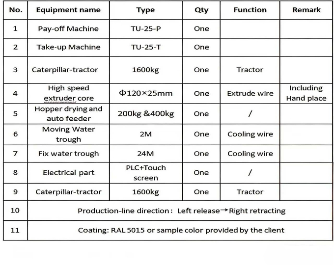 Línea de extrusión φ70 I. Parámetro principal Aplicación principal: Adecuado para recubrimiento por extrusión de cloruro de polivinilo blando (PVC), polietileno (PE) y polietileno reticulado (XLPE) como capas aislantes o de revestimiento. Diámetro...