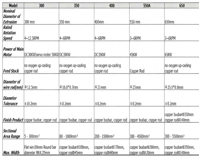 Modelo de máquina de extrusión continua 350 I. Características de la tecnología de las máquinas de extrusión 1. Extrusión y moldeado de varillas de cobre de alta presión/temperatura; Se adapta a producciones pequeñas (diversas) y de lotes grandes....
